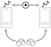 Selv hvis du starter afspilning ved at betjene den anden enhed, mens du afspiller musik på den første enhed, vil musikken fra den første enhed fortsat kunne høres via headsettet.