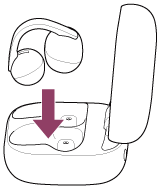 Cuando vuelva a colocar el auricular en el estuche de carga, introduzca primero el cuerpo del auricular (pequeño).