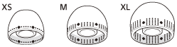 - Ørepudernes størrelse kan fastslås ud fra antallet af stiplede linjer indvendigt forneden på ørepuderne.