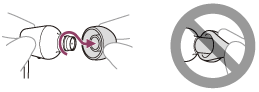 - Kun vaihdat nappikuulokkeiden sovitteet, kokeile erikokoisia sovitteita suurimmasta koosta pienempiin kokoihin. Korvanappien kärjen sopivin koko voi vaihdella vasemman- ja oikeanpuoleisten korvien välillä.