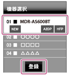 携帯電話の画面に[MDR-AS600BT]が表示されない場合は、もう一度手順3から操作してください。