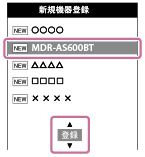 携帯電話の画面に[MDR-AS600BT]が表示されない場合は、もう一度手順3から操作してください。