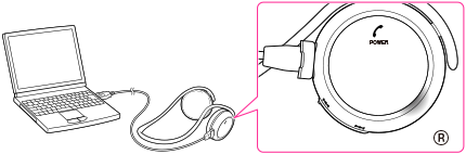 在耳機電源開啟的狀態下將micro-USB纜線連接至電腦時,耳機電源將會自動關閉。