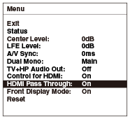 Sélectionnez [HDMI Pass Through:] dans le menu.