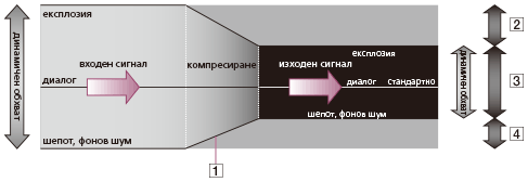 Когато включите или изключите функцията за компресиране, средното ниво на звука може да се промени. В такъв случай отново регулирайте силата на звука.