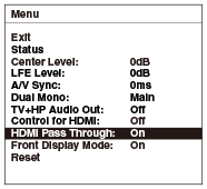Επιλέξτε [HDMI Pass Through:] στο μενού.