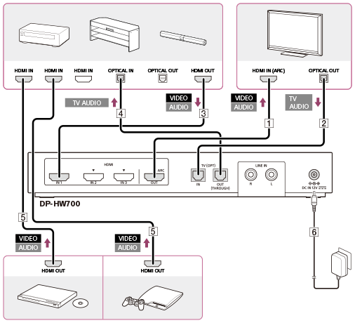 Connect the DP-HW700 processor, an AV amplifier, a TV, a BD/DVD device and/or a game device.