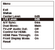 Select [LFE Level:] on the menu.