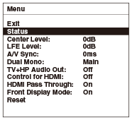 Menu wyświetlane na ekranie telewizora podłączonego do procesora umożliwia wprowadzanie ustawień lub sprawdzanie bieżącego stanu zestawu.