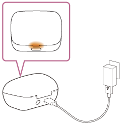 Εάν το πρόβλημα παραμένει, συμβουλευτείτε τον πλησιέστερο αντιπρόσωπο της Sony. - Εάν τα ακουστικά δεν χρησιμοποιηθούν για μεγάλο χρονικό διάστημα, η ενδεικτική λυχνία (πορτοκαλί) στη θήκη φόρτισης ενδέχεται να μην ανάψει αμέσως κατά τη διάρκεια της φόρτισης. Περιμένετε λίγο μέχρι να ανάψει η ενδεικτική λυχνία (πορτοκαλί).