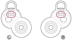 Stavite lijevu jedinicu slušalica s mikrofonom (jedinicu s dodirnom točkom) natrag u lijevu rupu kućišta za punjenje, stavite desnu jedinicu slušalica s mikrofonom natrag u desnu rupu kućišta za punjenje, umetnite obje jedinice dok ne kliknu, a zatim provjerite jesu li obje jedinice učvršćene u kućištu za punjenje.