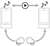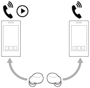 Ha a [Connect to 2 devices simultaneously] be van kapcsolva a „Sony | Headphones Connect” alkalmazásban, a headset egyszerre 2 eszközhöz is csatlakozhat Bluetooth-kapcsolattal, ami a következőket teszi lehetővé.