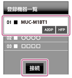 - [MUC-M1BT1]を選び[接続]を押す。