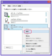 [サウンド]画面に[MUC-M1BT1]が表示されていない場合は、[サウンド]画面上で右クリックし、[無効なデバイスの表示]にチェックを入れてください。