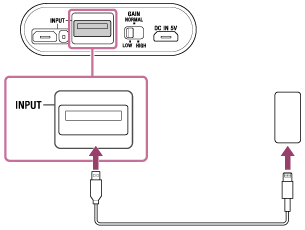 - A porta INPUT de ligação do WALKMAN/Xperia/ tem prioridade quando estão ligados múltiplos dispositivos à porta INPUT de ligação do WALKMAN/Xperia/ e à porta INPUT de ligação do iPhone/iPad/iPod ao mesmo tempo.