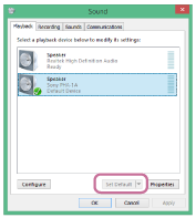- Selectați tabul [Playback] și selectați [Sony Headphone Amplifire(PHA-1AEU)] ca dispozitiv de redare, apoi faceți clic [Set default].