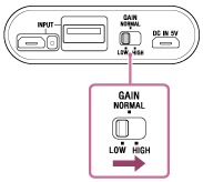 În acest caz, opriți amplificatorul pentru căști și setați comutatorul de selectare GAIN la NORMAL sau la HIGH și apoi porniți amplificatorul pentru căști. Comutatorul de selectare GAIN este setat la LOW din fabrică. În condiții normale de utilizare, setarea trebuie să fie LOW.