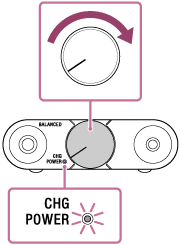 - 在耳机放大器开启状态下,您可以通过CHG POWER指示灯以绿色闪烁的次数来确认电池电量。