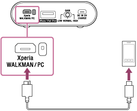 - 请勿在播放时拔出连接线插头,否则将无法进行播放。如果发生此情况,请重启耳机放大器或将连接线重新连接至Xperia。