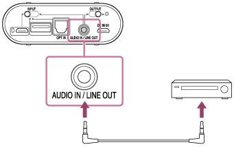 - Ojačevalnik ali aktivni zvočnik povežite z vtičnico AUDIO IN/LINE OUT na ojačevalniku za slušalke.