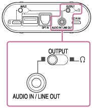 - Stikalo OUTPUT preklopite v položaj za vtičnico AUDIO IN/LINE OUT (položaj ob levem robu).