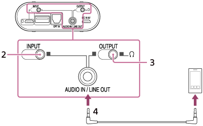 Pred povezovanjem znižajte glasnost v napravi Xperia in izklopite ojačevalnik za slušalke.