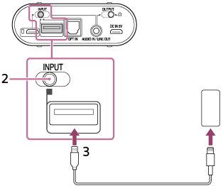 - Stikalo INPUT preklopite v položaj za vtičnico za napravo iPhone/iPad/iPod (drugi položaj z leve).