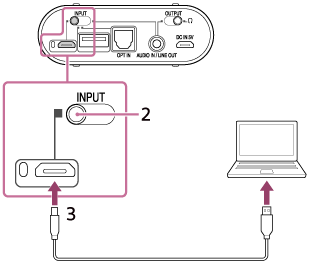 - Za predvajanje datotek z zvokom visoke ločljivosti prek računalnika in povezanega ojačevalnika za slušalke prenesite in namestite gonilniško programsko opremo Windows »Sony USB Device Driver«.