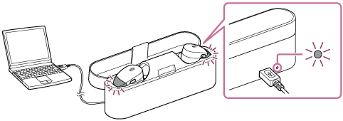 Pokud sluchátka s mikrofonem nelze zapnout nebo je nelze ovládat, i když jsou zapnutá, resetujte je. Po zahájení nabíjení kontrolka (červená) sluchátek s mikrofonem zhasne po uplynutí 10 sekund, potom se sluchátka s mikrofonem automaticky resetují. Informace o párování a další nastavení nejsou touto operací vymazány.