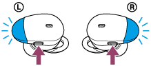 Los auriculares se encienden automáticamente y el indicador (azul) parpadea.