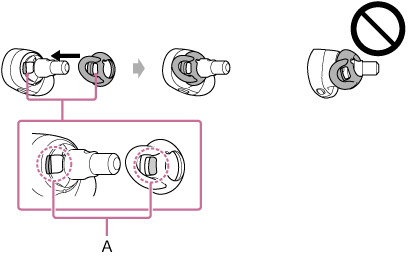 Remova os auriculares e, em seguida, retire os suportes de fixação.