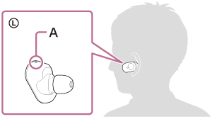 - Vous pouvez également écouter de la musique en ne retirant qu’une seule unité de l’étui de recharge et en la portant. Lorsque l’unité droite est portée, utilisez le capteur tactile de cette unité pour lire de la musique. Lorsque l’unité gauche est portée, utilisez le périphérique connecté pour lire de la musique. Si vous vous équipez de la seconde unité alors que vous écoutez de la musique avec une seule unité, vous pouvez écouter de la musique avec les deux unités.