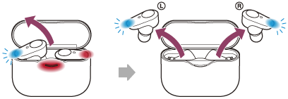 Slušalke se samodejno vklopijo in indikatorska lučka (modra) utripne. Ko iz ohišja za polnjenje odstranite samo eno enoto, se vklopi samo odstranjena enota.