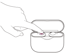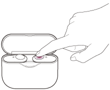 Slušalke vstavite v ohišje za polnjenje, pokrov ohišja za polnjenje pustite odprt, nato s prstom pritisnite in držite senzor za dotik na levi enoti približno 20 sekund.