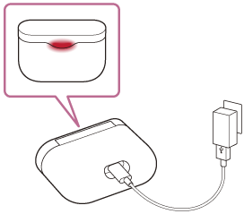 - Če med polnjenjem slušalke ali ohišje za polnjenje zaznajo težavo zaradi enega od spodaj navedenih vzrokov, indikatorska lučka (rdeča) na ohišju za polnjenje utripa. V tem primeru jih znova napolnite v navedenem razponu temperature pri polnjenju. Če težave ne odpravite, se posvetujte z najbližjim prodajalcem izdelkov Sony.