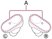 - Odstranite ovire med anteno naprave Bluetooth, s katero želite povezati slušalke, in vgrajeno anteno v slušalkah. Antena slušalk je vgrajena na mestu, ki je na sliki prikazano s prekinjeno črto.
