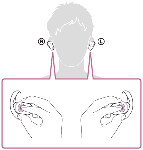 Če slušalke seznanjate z drugo ali naslednjo napravo (če so slušalke že seznanjene z drugimi napravami), slušalke vstavite v obe ušesi, nato prsta držite na senzorjih na dotik na levi in desni enoti približno 7 sekund.