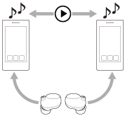 Vaikka käynnistät toiston käyttämällä toista laitetta, kun musiikkia toistetaan ensimmäisessä laitteessa, ensimmäisen laitteen musiikki jatkaa kuulumistaan kuulokkeista. Jos tässä tilassa lopetat toiston ensimmäisestä laitteesta, voit kuunnella toisen laitteen musiikkia kuulokkeista.