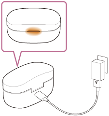 Ako problem ostane i dalje, obratite se najbližem distributeru tvrtke Sony. - Ako se slušalice s mikrofonom ne koriste duže vrijeme, (narančasta) lampica kućišta za punjenje možda neće zasvijetliti odmah kad počne punjenje. Pričekajte nekoliko trenutaka dok (narančasta) lampica zasvijetli.