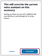 - Ako se pojavi zaslon [This will override the current voice assistant on this accessory], dodirnite [CONTINUE].