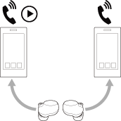 Kada je opcija [Connect to 2 devices simultaneously] uključena pomoću aplikacije „Sony | Headphones Connect“, slušalice sa mikrofonom se mogu istovremeno povezati sa 2 uređaja putem Bluetooth veze, omogućavajući vam sledeće.