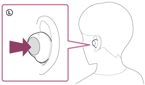 - 볼륨 감소: 음악 재생 중에 왼쪽 유닛의 버튼을 길게 눌러 볼륨을 연속으로 줄입니다. 원하는 볼륨 레벨에서 버튼을 놓습니다.