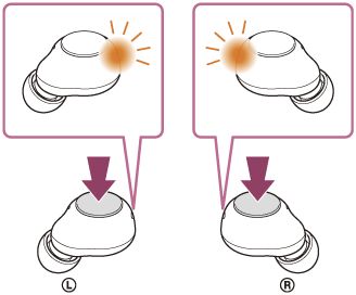 헤드셋의 표시등이 켜진 후 10초 이내에 헤드셋의 왼쪽 및 오른쪽 유닛의 버튼을 길게 누릅니다.