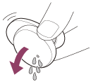 - إذا بقيت أي قطرات ماء داخل فتحة الميكروفون الخاص بسماعة الرأس، فقد يتسبب هذا في حدوث تآكل. إذا قمت بإدخال الماء إلى سماعة الرأس، قم بإدارة فتحة الميكروفون للأسفل وقم بالنقر عليها برفق لحوالي 5 مرات باتجاه قطعة قماش جافة، إلخ.