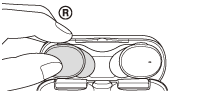 Con el pulgar sujetando con fuerza la unidad para que no se mueva en el estuche de carga, pulse el botón de la unidad con el dedo índice.