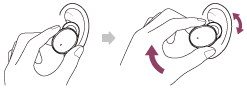 - Cuando no lleva puestos los auriculares en los oídos durante alrededor de 5 minutos después de haberlos quitado del estuche de carga, los auriculares se apagan automáticamente para ahorrar batería. Encienda los auriculares manteniendo pulsado el botón de los auriculares durante alrededor de 2 segundos o poniéndoselos.
