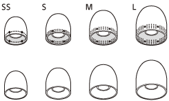 Si des lignes en pointillés sont présentes à l’intérieur de la base des oreillettes, vous pouvez déterminer la taille en fonction du nombre de lignes. S’il n’y a aucune ligne en pointillés, vous pouvez déterminer la taille en fonction de la couleur de l’intérieur des oreillettes.