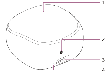 Laadt zowel de headset als het laadstation op door een computer of USB-netspanningsadapter (niet bijgeleverd) op deze aansluiting aan te sluiten met de bijgeleverde micro-USB-kabel. - Oplaadindicator (rood)