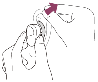 - Per agevolare l’inserimento dell’auricolare in profondità nell’orecchio, tirare leggermente verso l’alto la parte superiore dell’orecchio mentre si ruotano le cuffie.