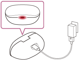 - Ak slúchadlá alebo nabíjacie puzdro vykážu počas nabíjania problém v dôsledku nasledujúcich príčin, indikátor (červený) nabíjacieho puzdra zabliká. V takom prípade slúchadlá znova nabite a dodržte pri tom teplotu nabíjania. Ak problém pretrváva, obráťte sa na najbližšieho predajcu produktov značky Sony.